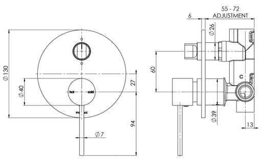 Phoenix TapwareAdjustable set out for flexible installation High quality, solid brass backplate 35mm ceramic cartridge with 15 year warranty Designed in Australi...