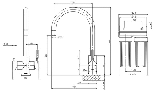 Vivid Filtered Sink Mixer 220mm Gooseneck with Filters (Chrome)