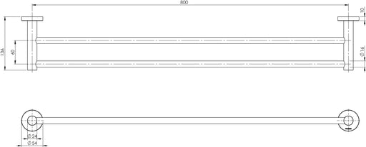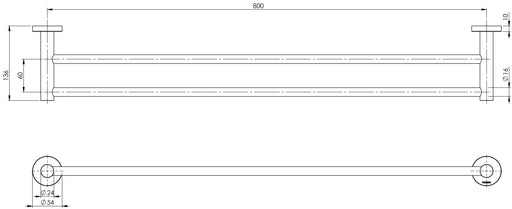 Radii Double Towel Rail 800mm (Round) (Brushed Carbon)