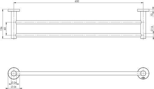 Radii Double Towel Rail 600mm (Round) (Brushed Carbon)